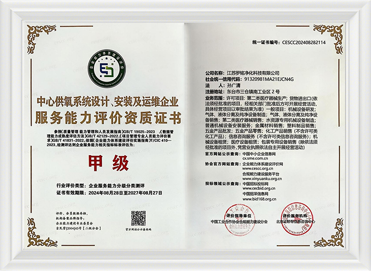 Entwurf, Installation, Betrieb und Wartung eines zentralen Sauerstoffversorgungssystems, Qualifikation zur Bewertung der Servicefähigkeit des Unternehmens