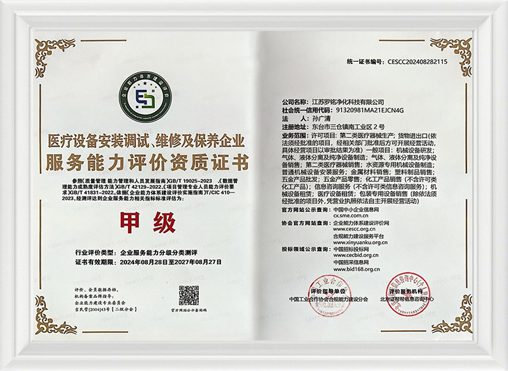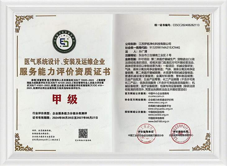 Qualifikation für Entwurf, Installation, Betrieb und Wartung von medizinischen Gassystemen zur Bewertung der Servicefähigkeit eines Unternehmens