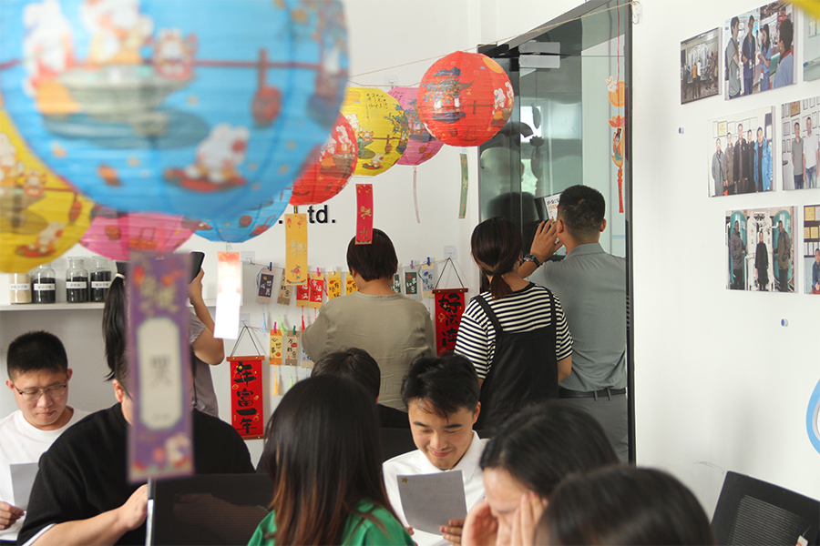 Es wurden verschiedene traditionelle Aktivitäten organisiert, wie das Lösen von Laternenrätseln und das Fächermalen. Während dieser Aktivitäten war die Luft voller Gelächter, was die vielfältigen Fähigkeiten und das harmonische Umfeld innerhalb des Jiangsu Luoming-Teams hervorhob.
