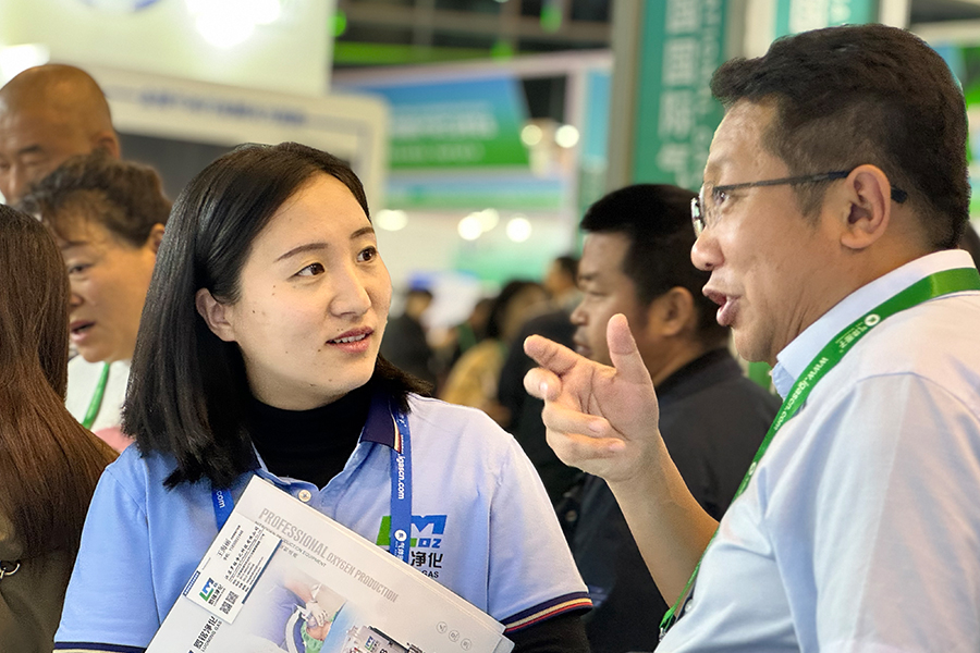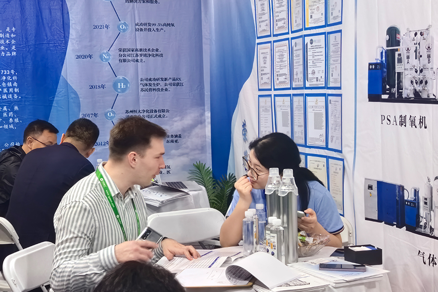 Aus den Bildern vor Ort geht hervor, dass unser Stand gut sichtbar Bilder unserer vielfältigen Ausrüstungspalette zeigt, darunter Sauerstoffgeneratoren, Stickstoffgeneratoren, Generatoren für hochreinen Sauerstoff, Gasreinigungseinheiten und Gasfüllgeräte. Darüber hinaus werden verschiedene Auszeichnungen und Qualifikationen von Jiangsu Luoming gezeigt. Unser engagiertes, energiegeladenes Vertriebsteam nutzt sein fundiertes Branchenwissen, um der besuchenden Kundschaft unsere hochmodernen Geräte vorzustellen.