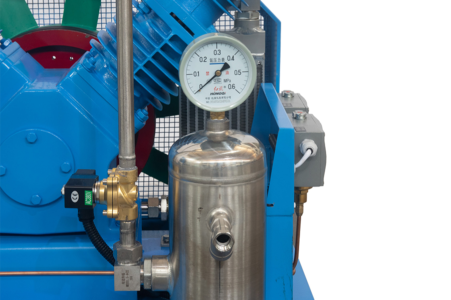 Sauerstoff ist ein heftiger Beschleuniger, der leicht zu Verbrennungen und Explosionen führen kann. Bei der Konstruktion und Verwendung von Sauerstoffkompressoren ist besondere Vorsicht geboten: Der Kontakt von Druckgaskomponenten mit Öl ist strengstens verboten, Öl wird bei der Wartung nicht verunreinigt und es muss vor dem Zusammenbau mit Lösungsmitteln gereinigt werden.